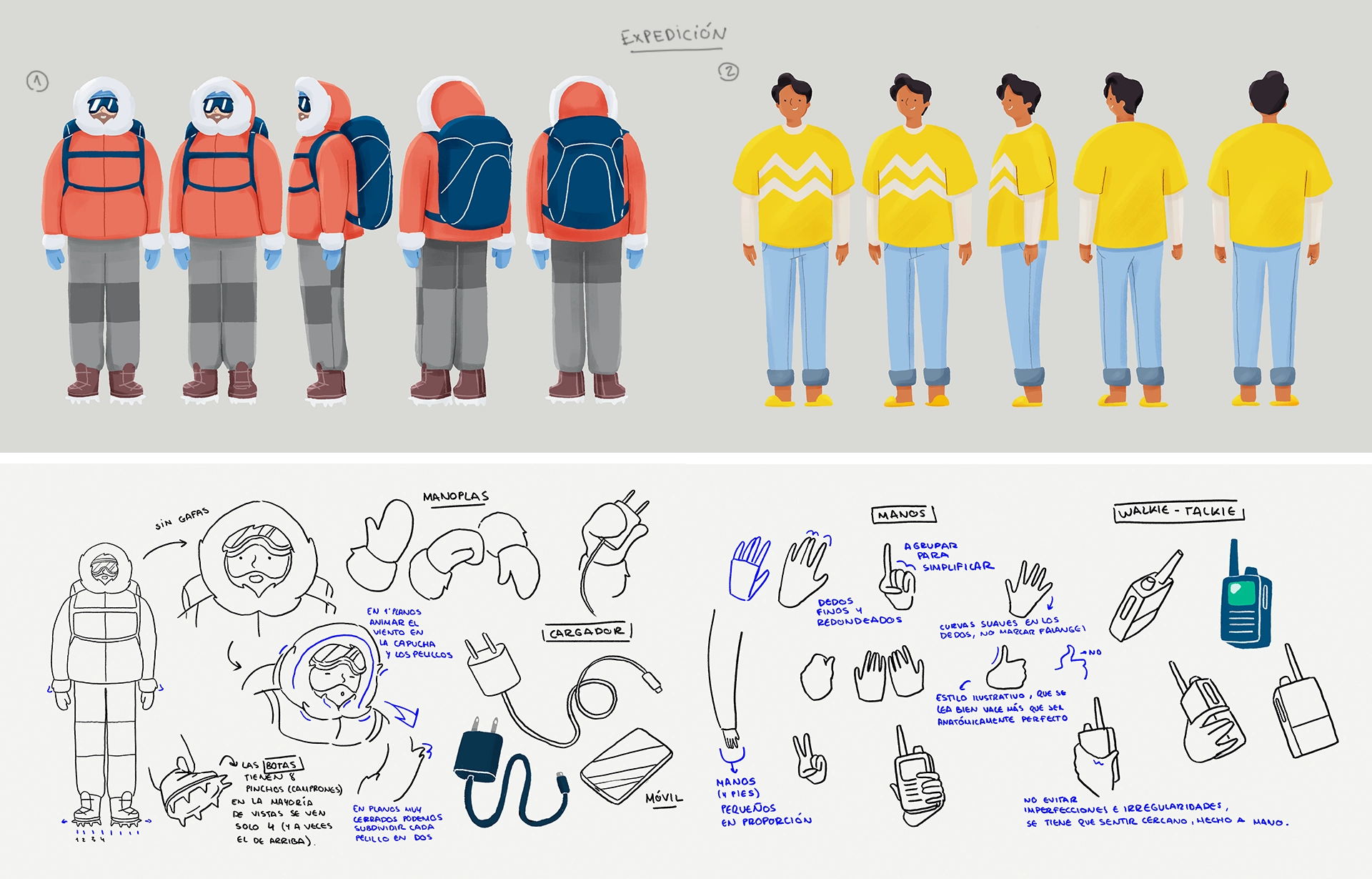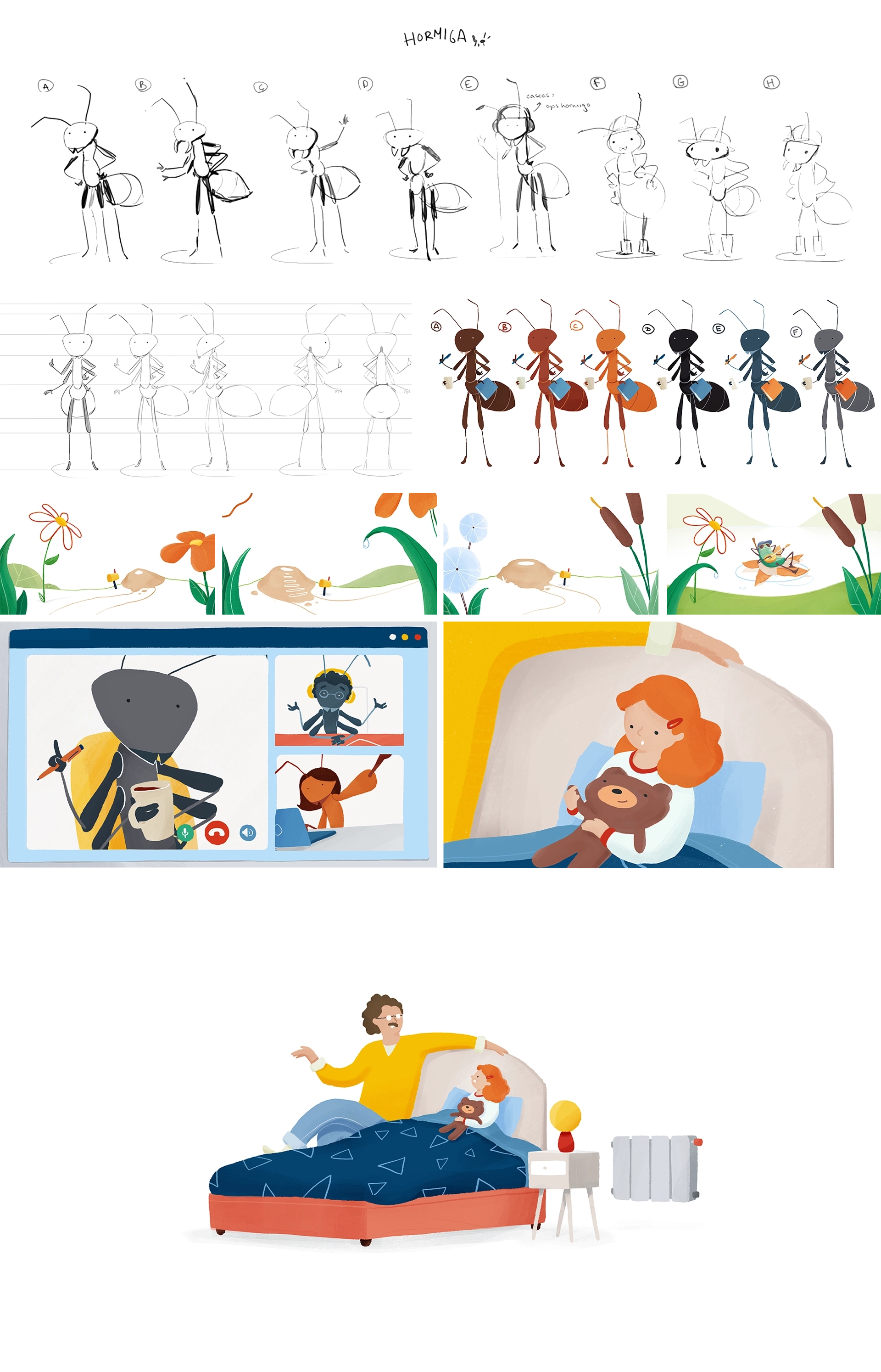 I was the animator supervisor of the team that worked on each ad, but luckily I still got to do my own shots. Some of them are above. Below, some of the sketches and styleframes I did for designing the characters and backgrounds of each piece.