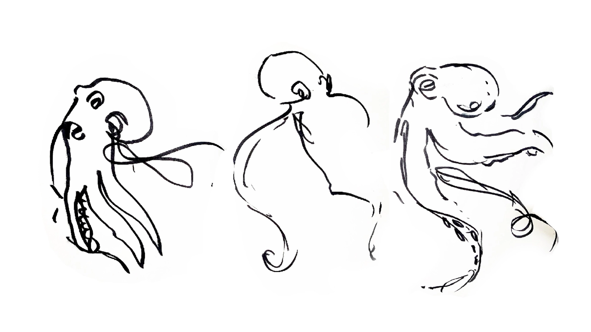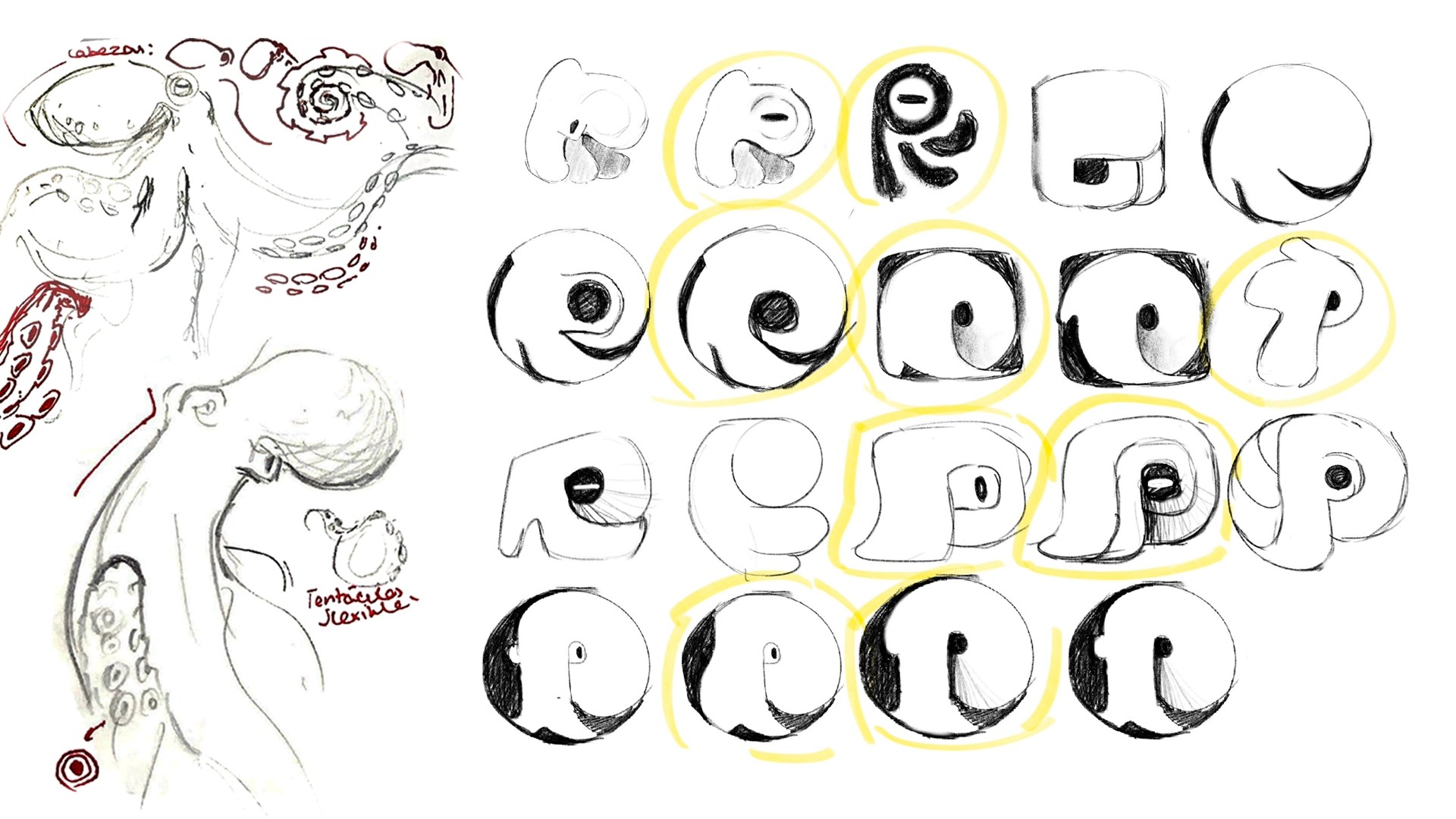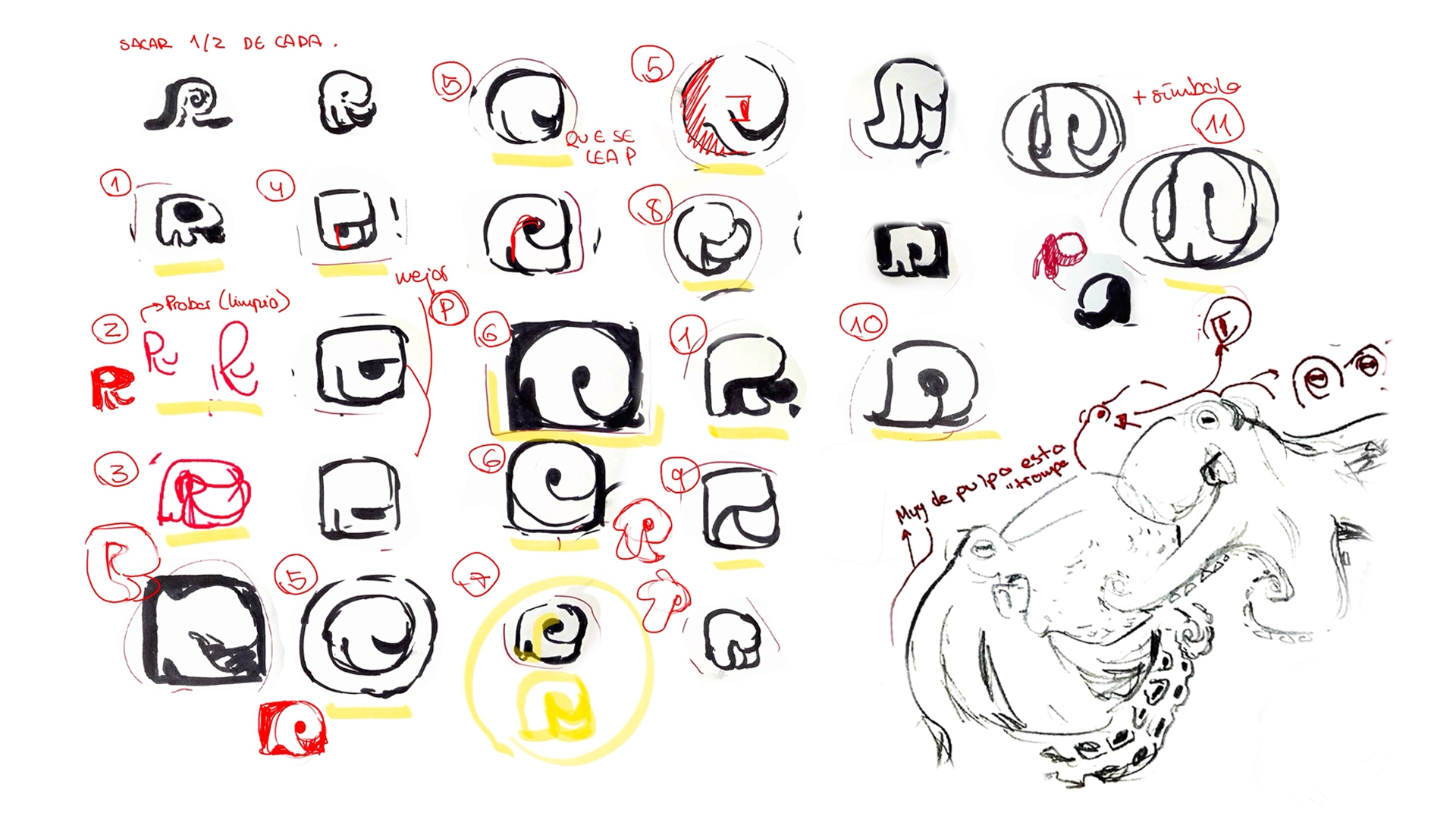 The video was animated entirely with After Effects, while the storyboard was done in Blender. Check out the process behind the logo below. It involved drawing a lot of octopuses, sketching even more thumbnails and a long path of iterations, trial and error and consulting with Marco.